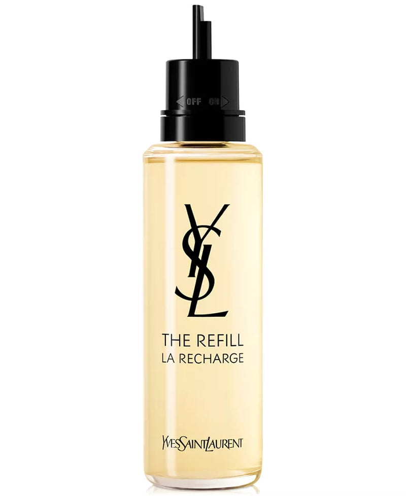 YSL Libre Eau de Parfum refillable Spray is a bold, floral and vanilla perfume. A statement feminine fragrance for those who live by their own rules, is also a statement of value, refillable at home with a 100ml refill bottle. French lavender essence combines with the sensuality of Moroccan orange blossom, a daring note of musk accord and warm vanilla for a unique, long-lasting, and feminine scent. Libre Eau de Parfum 100ml refill bottle is compatible with the 10ml, 30ml, 50ml and, 90ml bottles bearing the mention "refillable" on the outer packaging. Refilling the Eau de Parfum bottle helps to save 41%* glass, 67%* metals and, 38%* plastic.