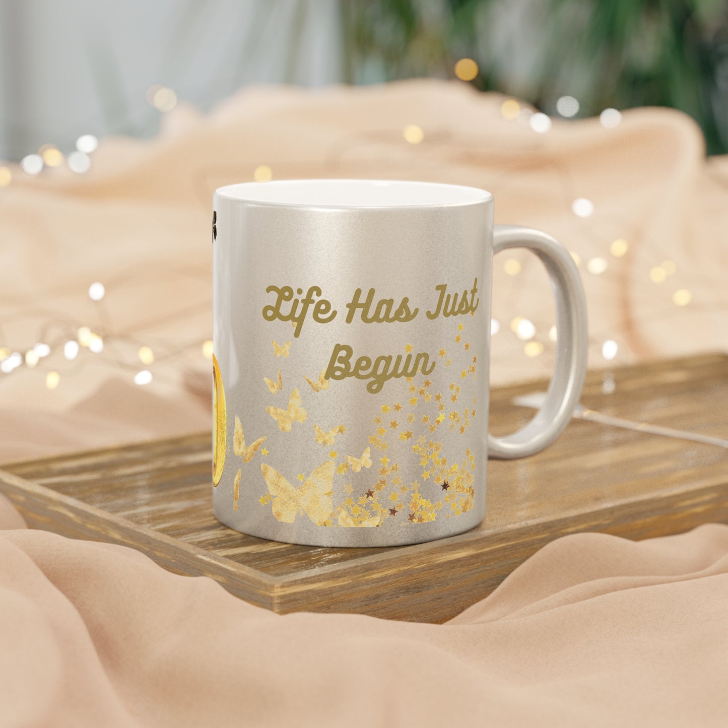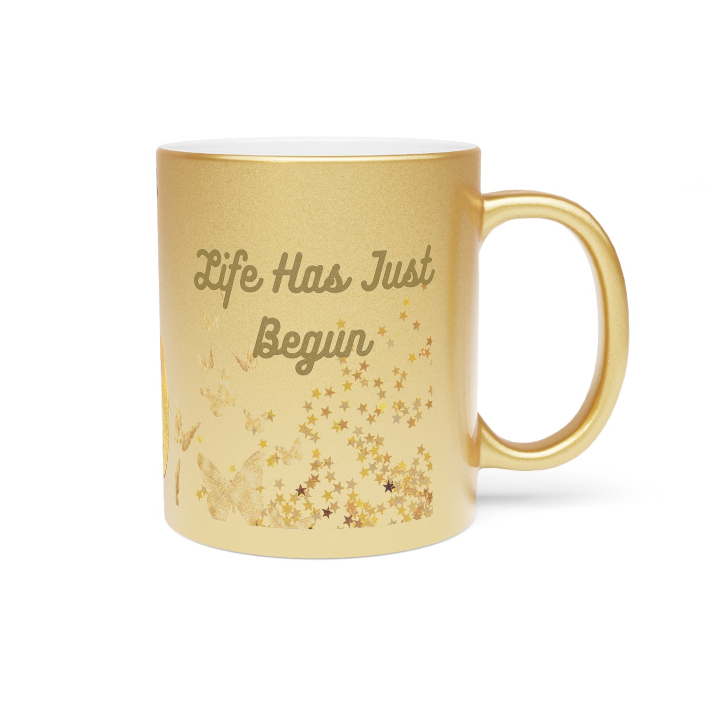 Personalized metallic coffee mugs are the perfect way to begin or end your day. These 11oz mugs are made with ceramic material that can be coated with either a Gold or a Silver coating for extra flashy looks. Add your own designs on either one or both sides and bring your favorite mug to life. NOTE: Black designs will print the best due to the nature of the coating. White will be completely transparent.