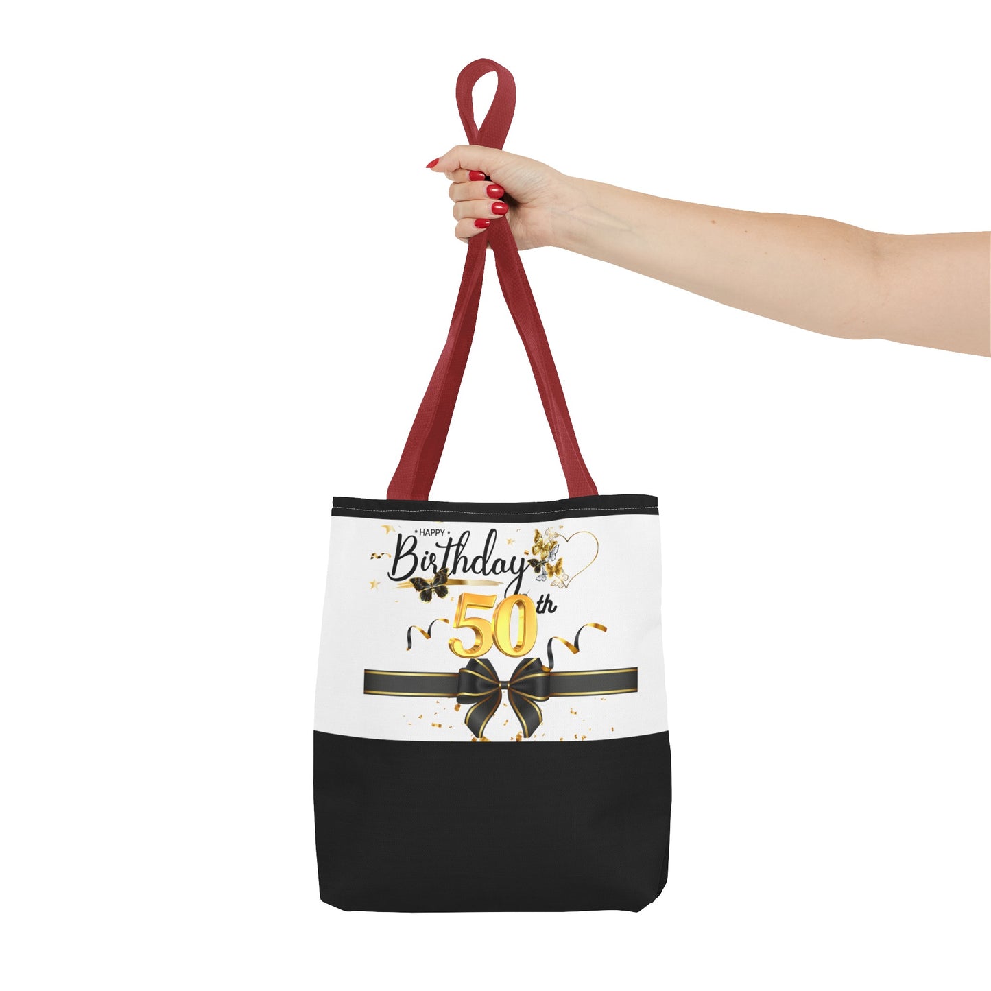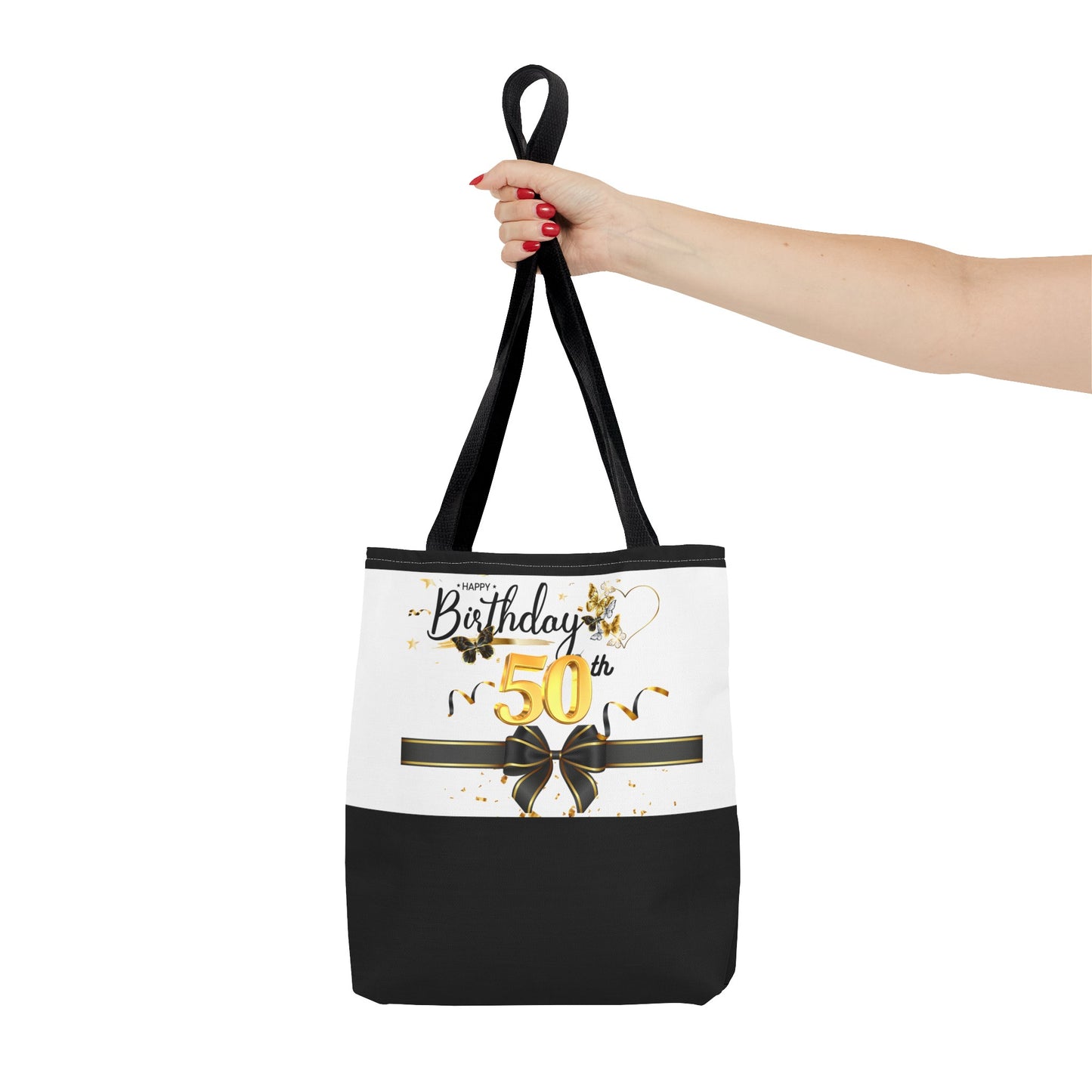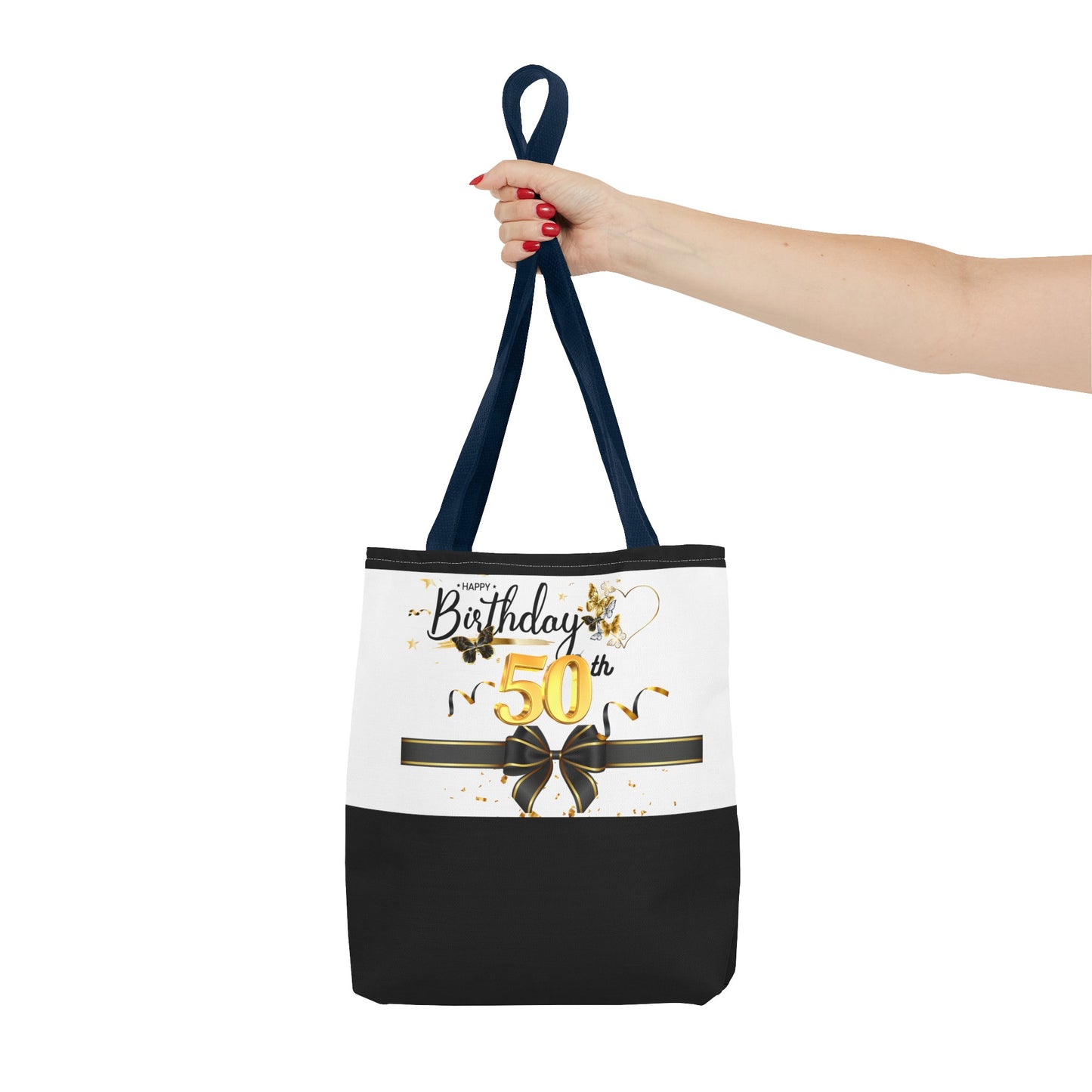 Available in 3 sizes to add both functionality and style, these custom-printed tote bags come with multiple handle colors to match your designs. Made with spun polyester, these bags feature double-stitched seams, cotton webbing straps, and nonwoven laminate lining for high-end durability. Your all-over print is created with dye sublimation for high-end visuals.