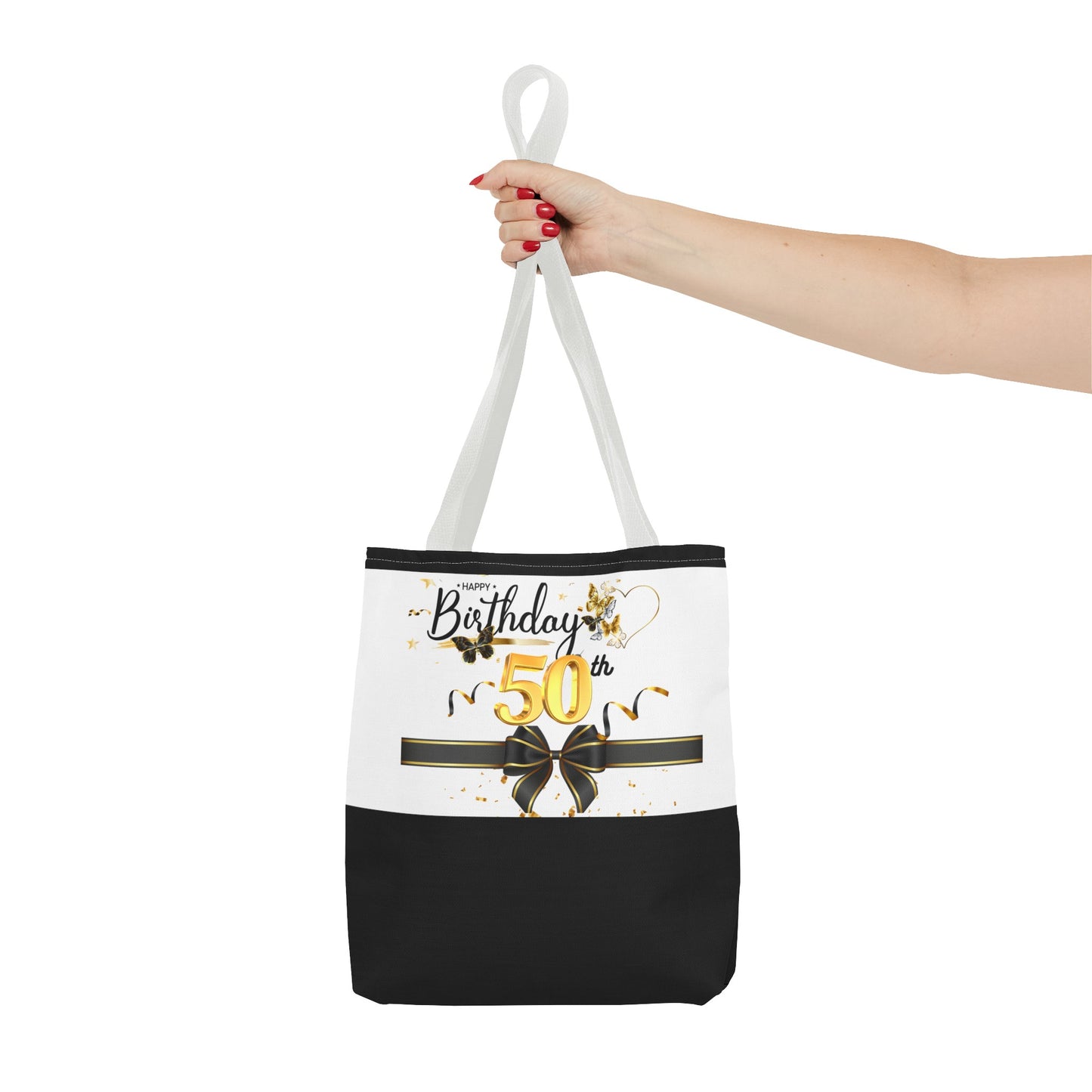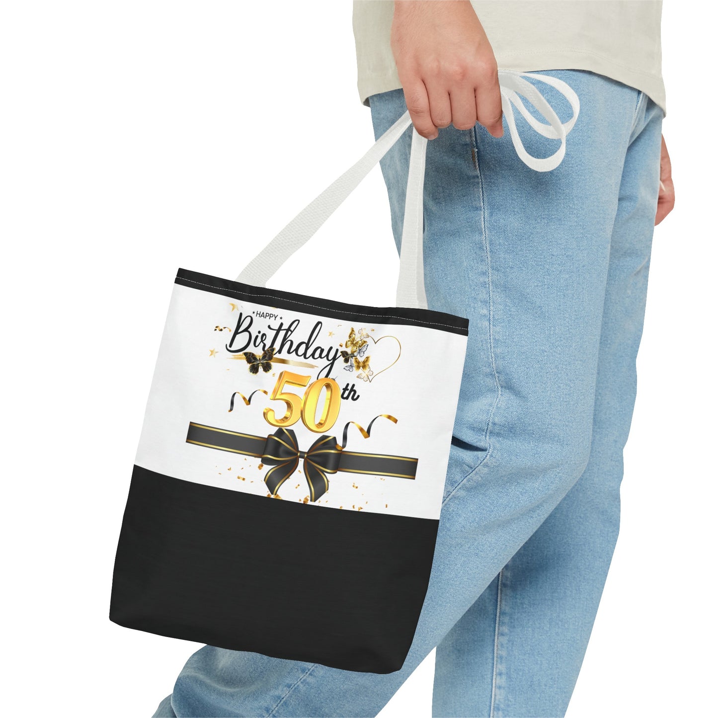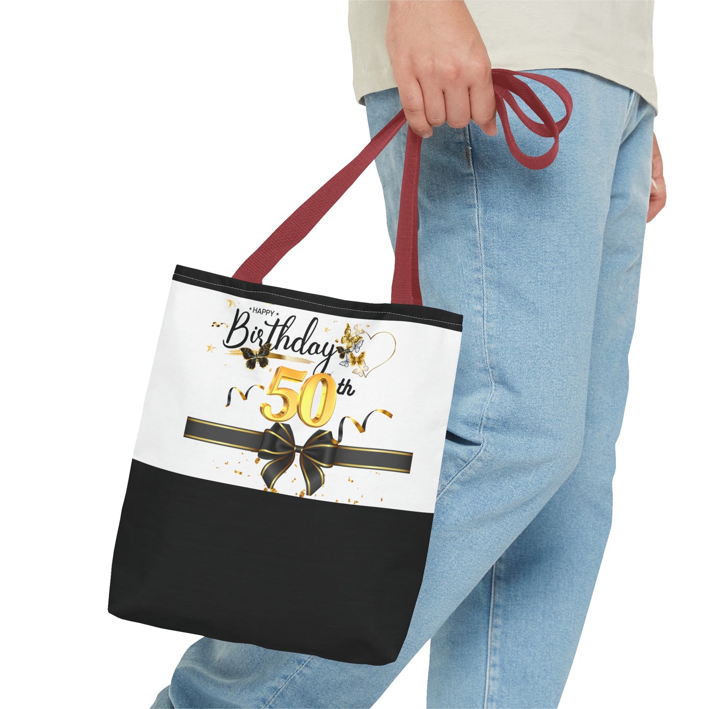 Available in 3 sizes to add both functionality and style, these custom-printed tote bags come with multiple handle colors to match your designs. Made with spun polyester, these bags feature double-stitched seams, cotton webbing straps, and nonwoven laminate lining for high-end durability. Your all-over print is created with dye sublimation for high-end visuals.
